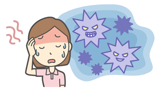これらの症状は、感染から1〜3日で急速に現れます。風邪と違い、全身症状が強く現れる点が特徴です。