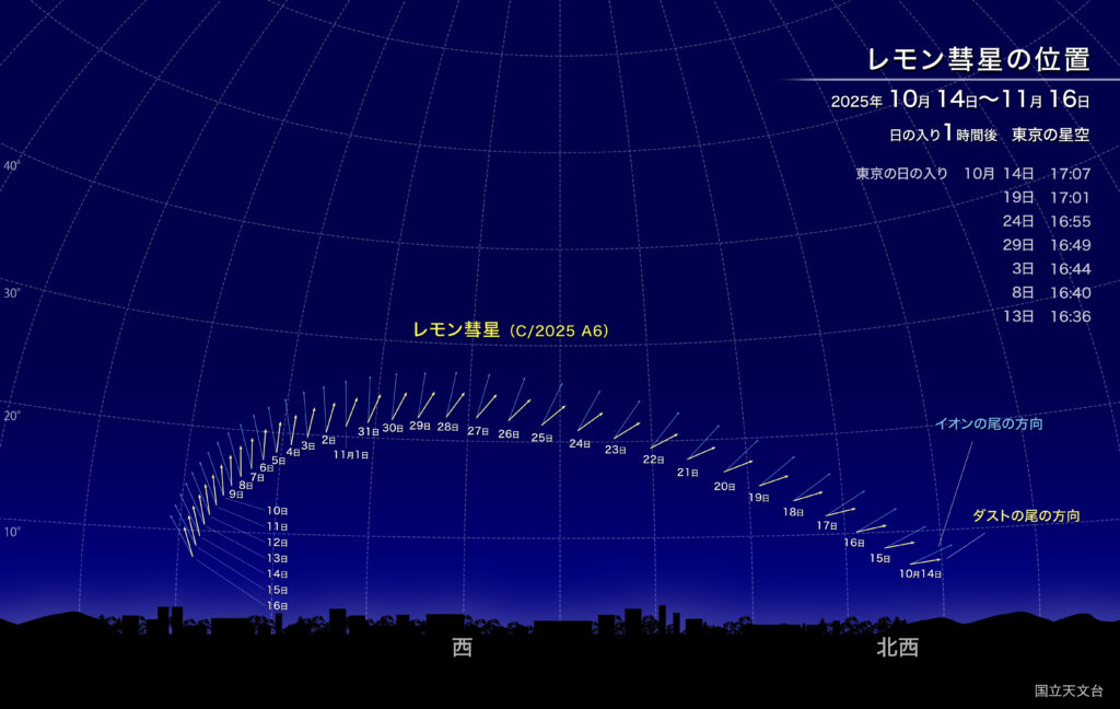 - 彗星は動きが速く、日々位置が変化します。観察予定日前後には最新の星図・方角を確認してください。